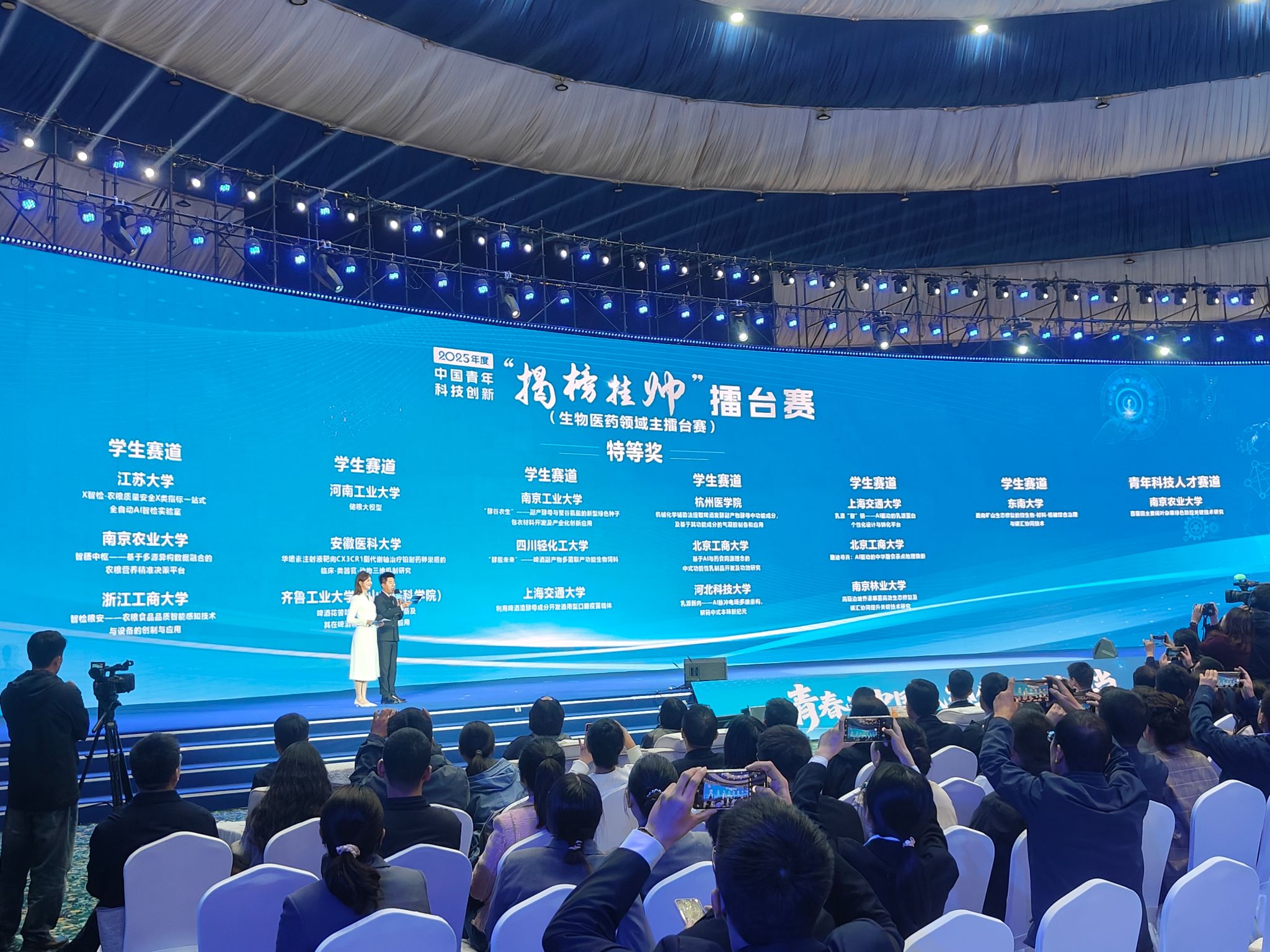本次“揭榜挂帅”擂台赛由共青团中央、中国科协、教育部、中国社会科学院、全国学联等单位联合指导,聚焦国家战略需求、粮食安全与产业关键技术瓶颈,面向全国高校及科研机构青年团队设立多个赛道,旨在通过“揭榜挂帅”机制激发青年科技人才创新潜能,推动产学研用深度融合。生物医药领域赛事汇聚了来自全国各地256个优秀团队1万余名学子参与,围绕智慧农业、健康食品、生物检测等前沿方向展开激烈角逐。
